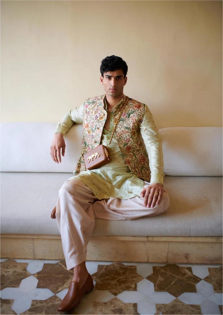 House of Masaba brings personality into men’s ethnic wear through bold prints, unconventional colour palettes, and playful detailing. It is not rooted in classical restraint; instead, it thrives on individuality. The brand caters to men who want their outfits to spark conversation, from printed kurtas to experimental jackets. While not traditionally regal, Masaba’s menswear stands out for its confidence, making it perfect for cocktail functions, pre-wedding events, and fashion-forward celebrations.