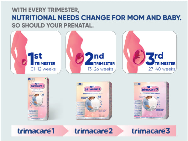 The unique 3-stage course products – TrimacareTM 1, TrimacareTM 2, and TrimacareTM 3 – support dynamic nutrient requirements in pregnancy and aid in the optimal development of the baby. The formulation also takes care of pregnancy symptoms during different trimesters – the Anti-Emetic blend and Vitamin B6 in TrimacareTM 1 prevents nausea and morning sickness; while the bowel regulator in TrimacareTM 3 prevents constipation.