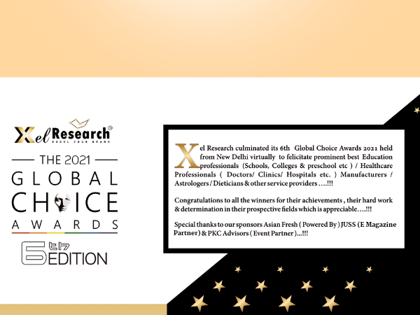 New Delhi [India], September 1 (ANI/SRV Media): Xel Research, one of the leading market & brand research companies recently concluded its Global Awards 2020-21 that honored and felicitated India’s leading organizations and professionals from different industries for their stellar role in their respective fields. The virtual award show was held on 29th August 2021 and awarded 77 winners across various categories for their efforts to bring a positive impact. The awards were based on a comprehensive market research study and opinion surveys conducted by Xel Research.