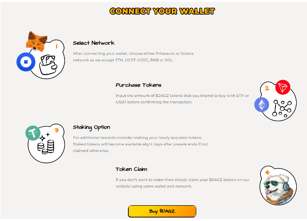 Getting in the Dawgz AI presale is simple, built for all levels of crypto investors.