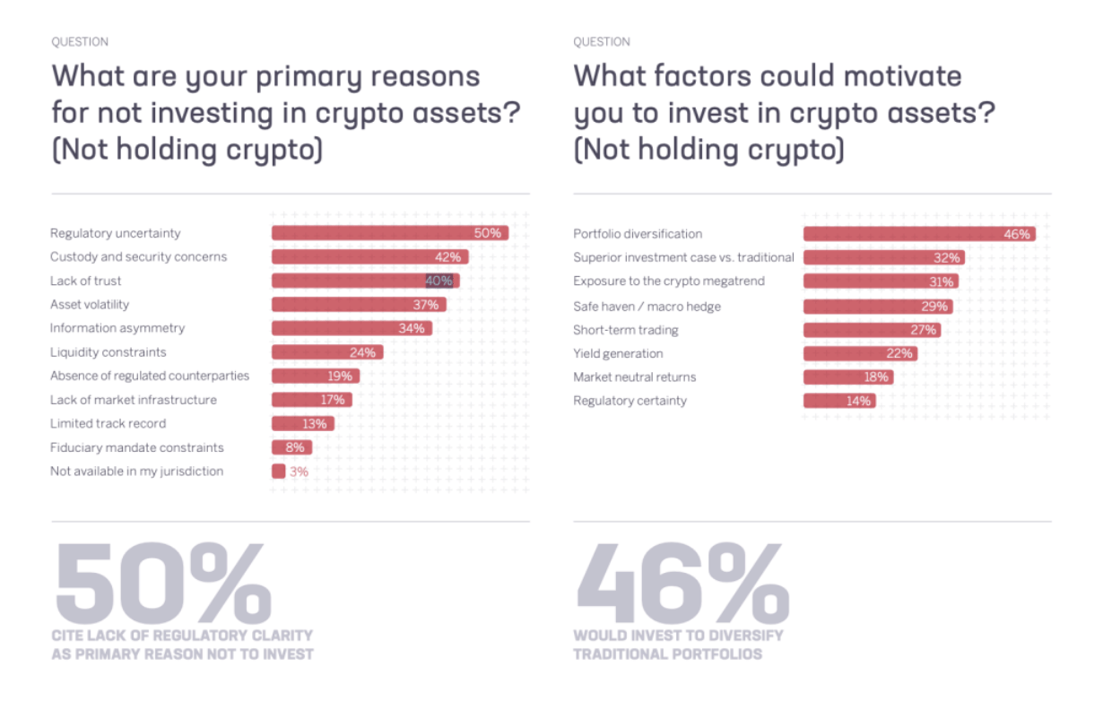 The institutional mindset still regards crypto as unstable, unsustainable, and structurally risky. The Sygnum Bank 2025 report shows 40% of organizations don’t trust crypto markets, while 50% cite unclear regulation, leaving blockchain startups dramatically underfunded compared to broader fintech.
