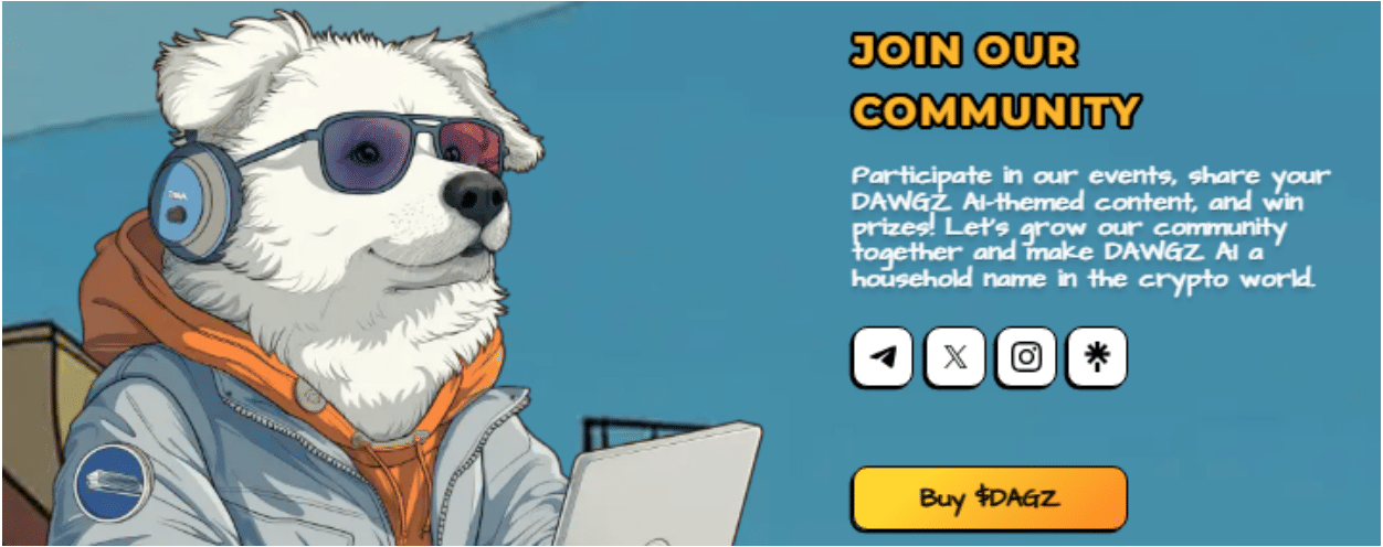 Social media hype is back and Dawgz AI is already the next meme coin. Why Dawgz AI? Because this isn’t just a meme coin – it’s a blend of technology and community driven rewards.