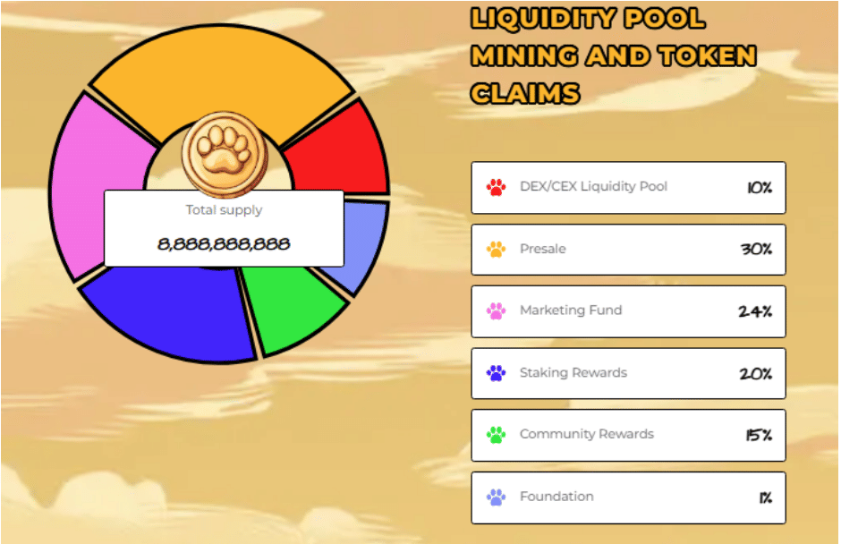 Dawgz AI’s transparent tokenomics ensures long term sustainability. From its total supply of 8,888,888,888 tokens, the allocation is: