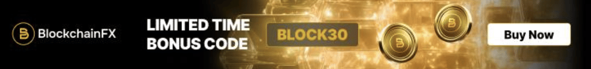 Secure your tokens now with code BLOCK30—BlockchainFX is the top 100x crypto presale in 2025 and could be your ticket to millionaire-making profits