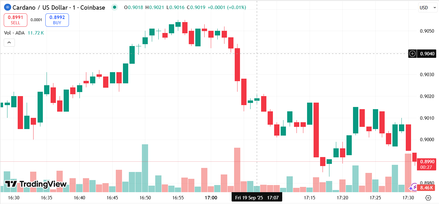 After months of sluggish trading, the Cardano price has broken through a major descending trendline, with ADA now trading around $0.89. The recent surge follows the Fed’s recent rate cut, sparking a notable influx of capital into risk-on assets, such as cryptocurrencies. Technical indicators are optimistic, with the 50-day moving average crossing above the 200-day moving average, a “golden cross” that indicates prolonged higher momentum.