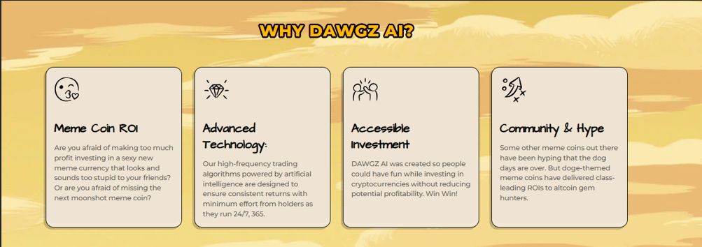 With its unique blend of AI-driven trading bots and the viral appeal of meme coins, Dawgz AI stands out in the crypto space.