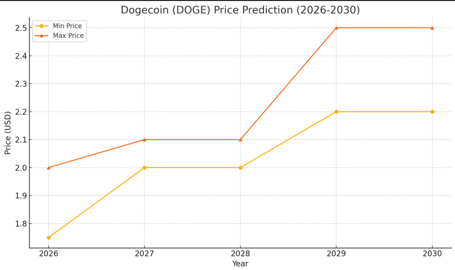 Here’s a concise and clear Dogecoin price prediction from 2026 to 2030 based on recent forecasts.