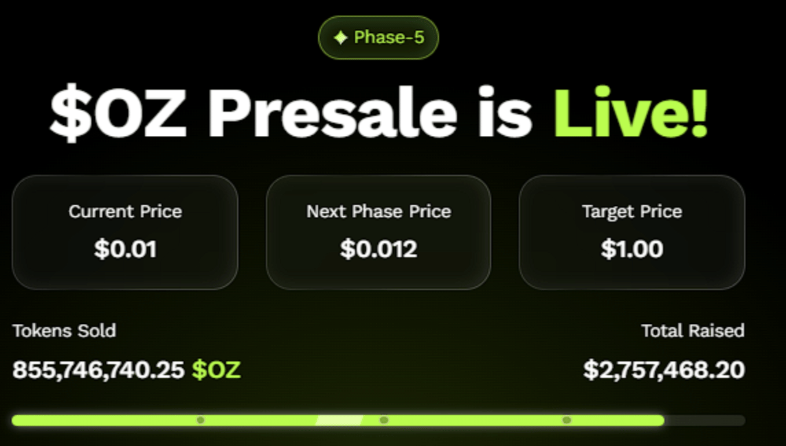 Crypto investors are increasingly turning their attention toward presale opportunities that offer high upside potential, and Ozak AI (OZ) has quickly risen to the top of that list. With its presale now surpassing the $2.7 million milestone, momentum is building as buyers race to secure tokens before the price increases in Stage 6. Positioned at the powerful intersection of blockchain and artificial intelligence, Ozak AI is shaping up to be one of the most anticipated projects of 2025, and early investors are already reaping the benefits of its rapid growth.