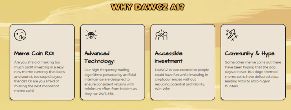 Dawgz AI, however, offers a more reliable investment with AI-driven technology focused on maximizing ROI.