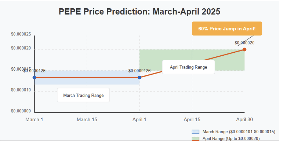 April looks even better, with PEPE prices potentially hitting $0.000020 – a 60% jump from March. This could be a great time to buy before bigger moves happen.