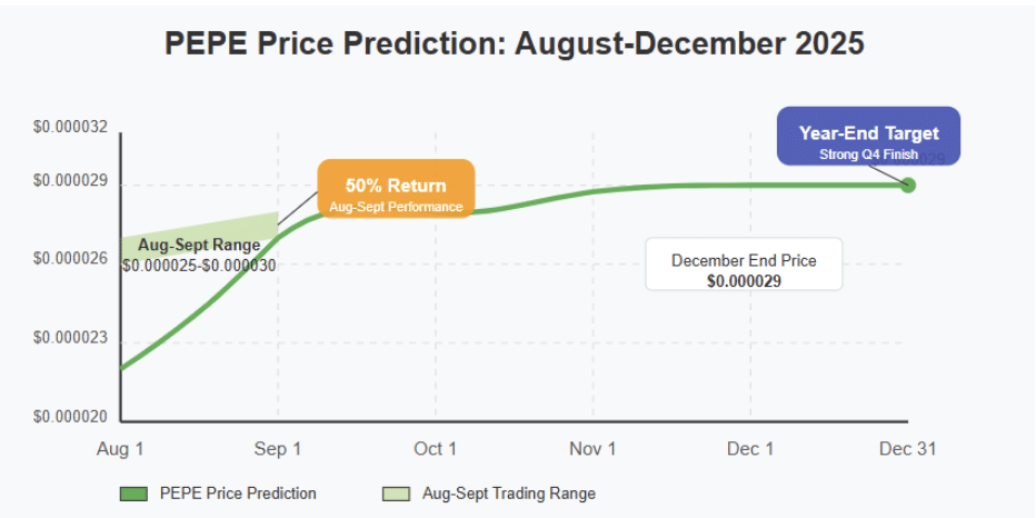 The second half of 2025 looks promising for PEPE price. August and September could see PEPE prices climb to $0.000025-$0.000030, offering a 50% return.