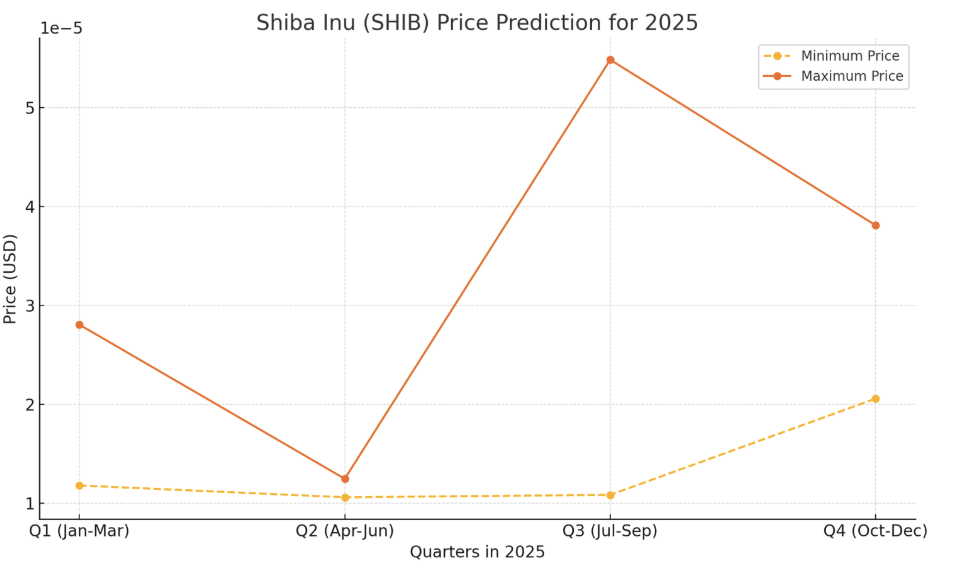 - April: The Shiba Inu coin sees reduced momentum, with prices likely stabilizing around $0.00001779 (ROI ~42.71%).