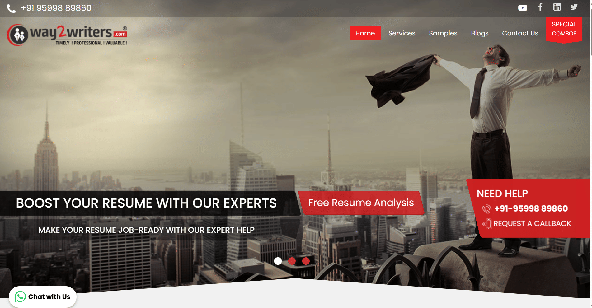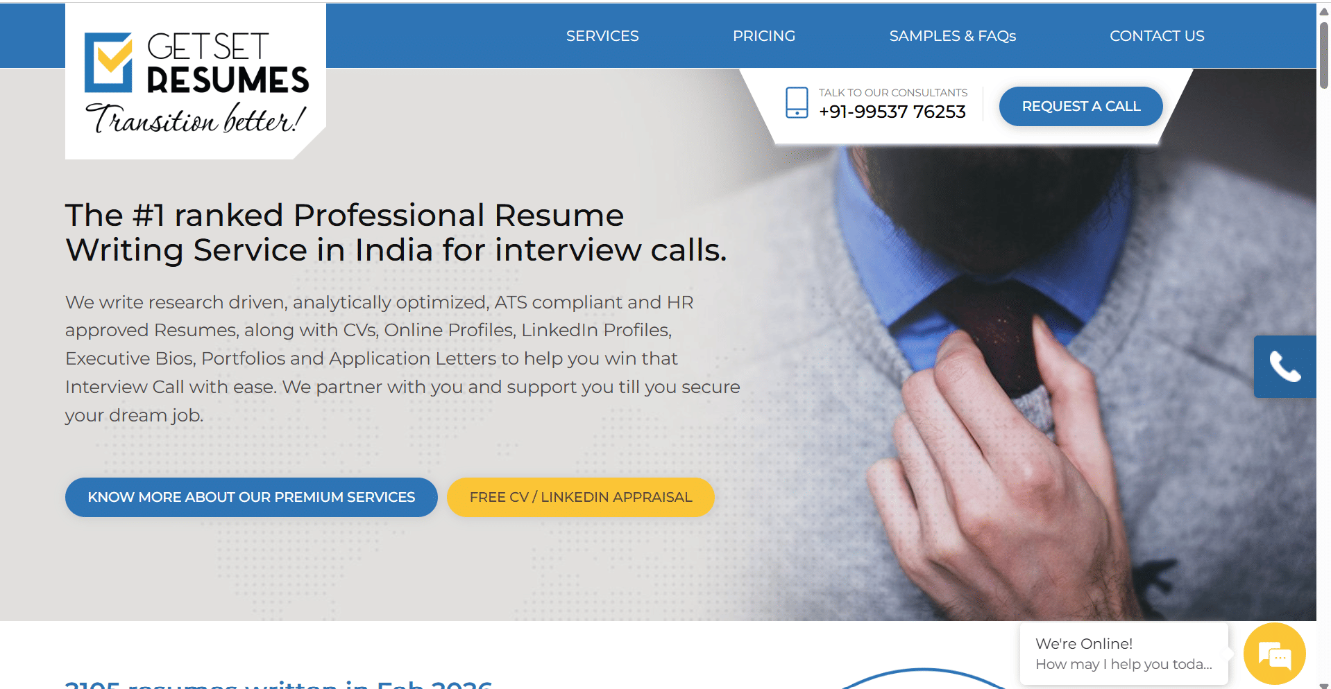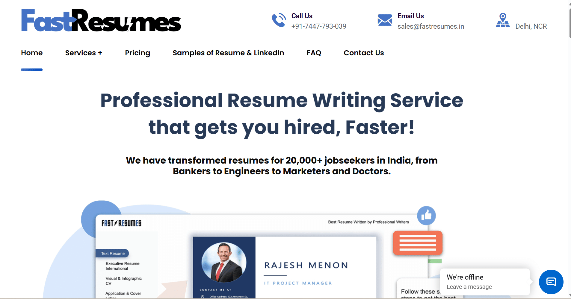 Pricing: Starts at ₹1799 for entry-level professionals but their specialty lies in working with Senior professionals and CXOs. Pricing can go as high as ₹10000 for a premium CXO resume.