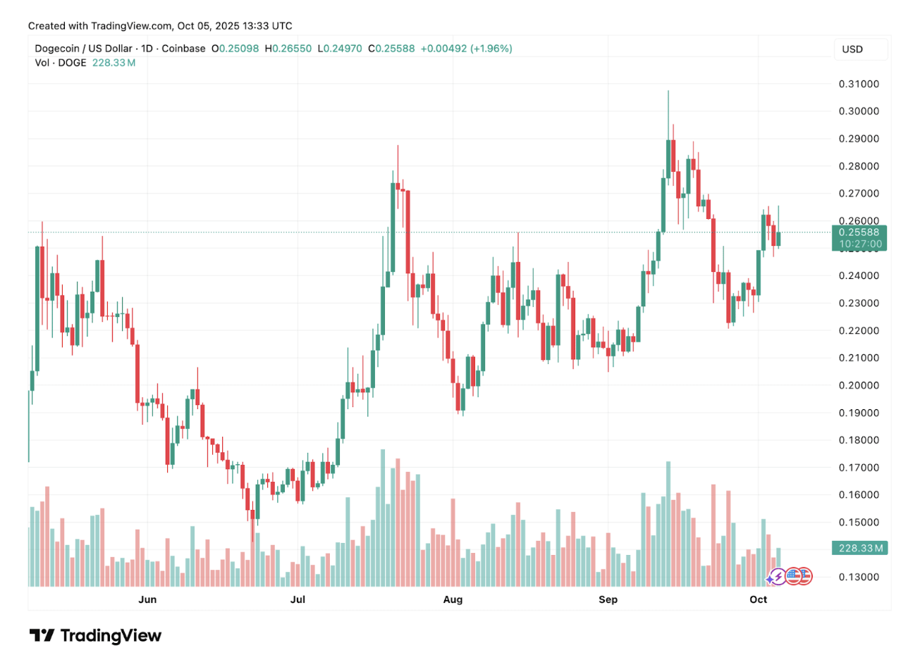 Dogecoin price is currently $0.2558, attracting attention as analysts highlight a potential bullish breakout. The token has formed steady higher lows, indicating growing buyer interest, and may be poised for a significant rally in the coming weeks.