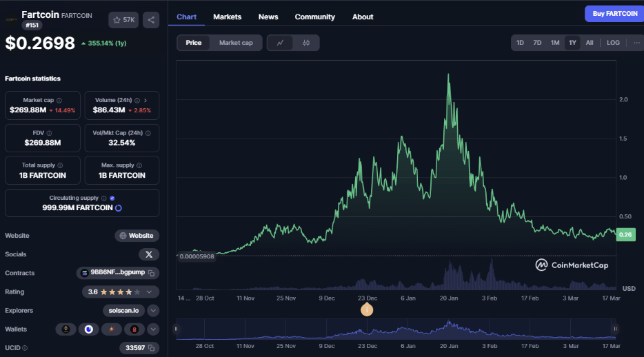 The meme coin market thrives on virality, and Fartcoin’s clever branding has given it a cult-like following. With meme coins making a comeback, it could see even bigger gains in 2025.