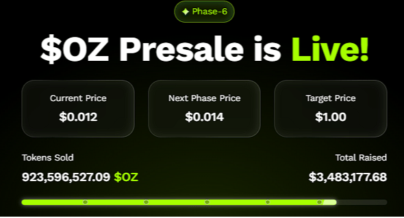 Among these, Ozak AI is emerging as one of the hottest opportunities. Currently in its 6th presale stage at $0.012 per token, Ozak AI has already raised more than $3.4 million and sold over 915 million tokens. Its rapid growth has attracted attention across the spectrum, uniting small investors and whales in their pursuit of life-changing gains.