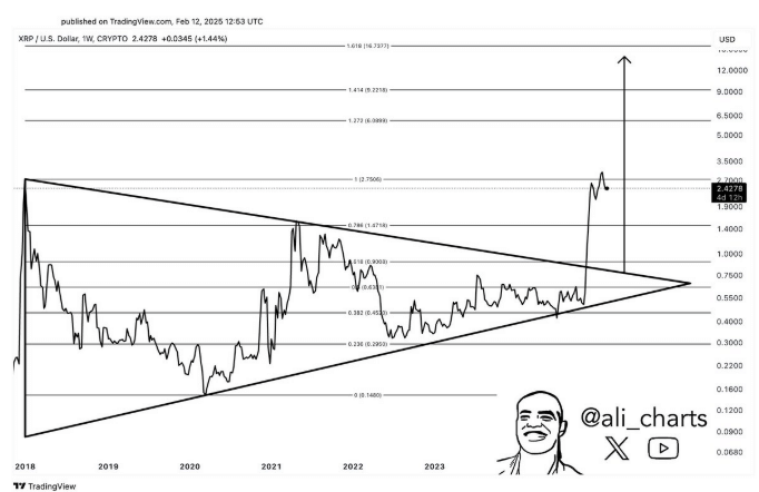 Recently, Ali Martinez debuted a new post on X discussing a long-term consolidation pattern that XRP appears to have undergone for some time. This cryptocurrency’s consolidation is currently inside a Symmetrical Triangle, which narrows as its trend lines approach convergence. In these circumstances, a breakout from the pattern becomes more likely.