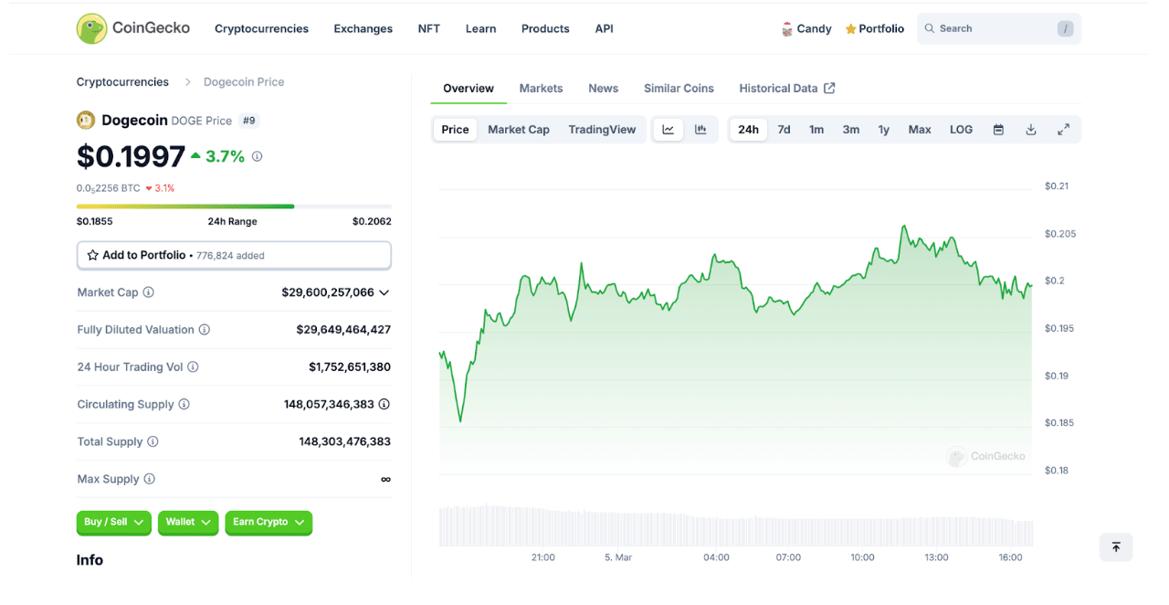 Currently priced at $0.1997, experts say if DOGE maintains its position above $0.19 there is a possibility of reaching $0.21–$0.22 but falling beneath $0.18 could trigger an extensive downward trend.