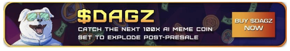 The meme coin with the most potential is the native token $DAGZ. Combining artificial intelligence and trading bots to boost investments, it stands out as one of the most promising.