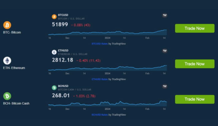 The Treasure Flow Systems trading platform focuses mainly on crypto trading. It supports all major crypto assets listed below and more:
