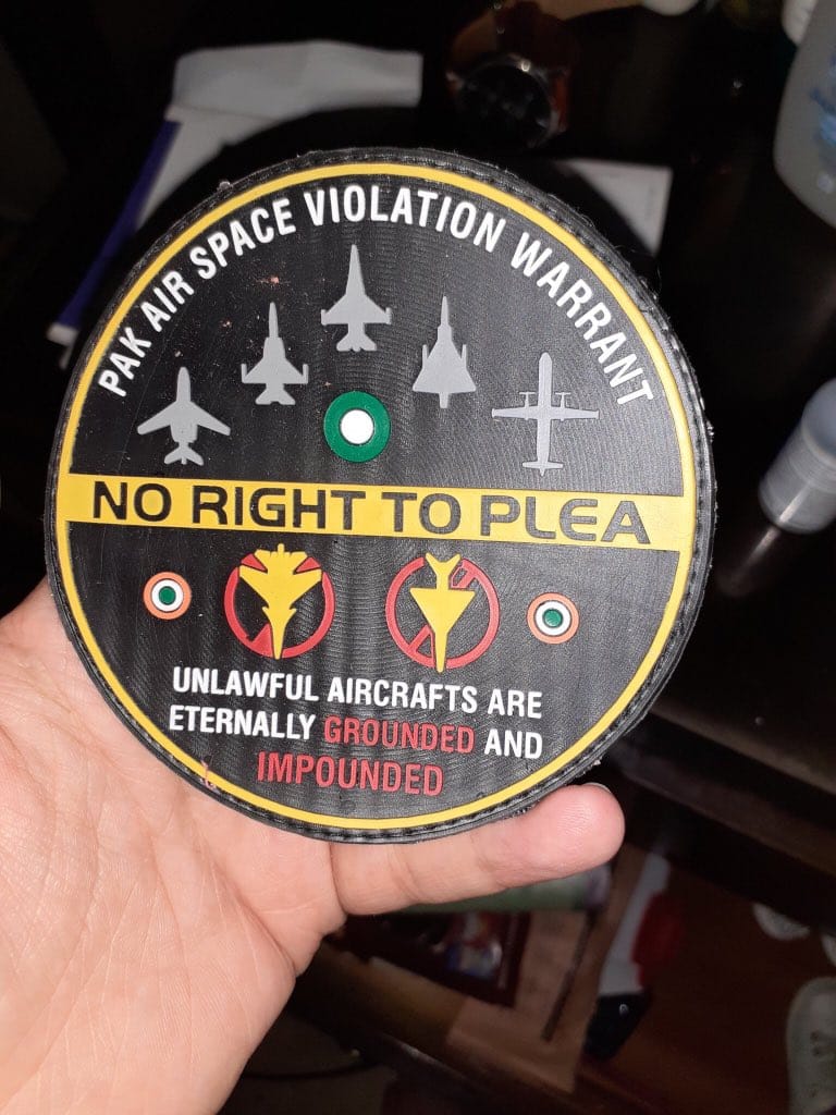 Following this, several patches came out, including one which said “Pak Air Space Violation Warrant — unlawful aircrafts (sic) are eternally grounded and impounded”.