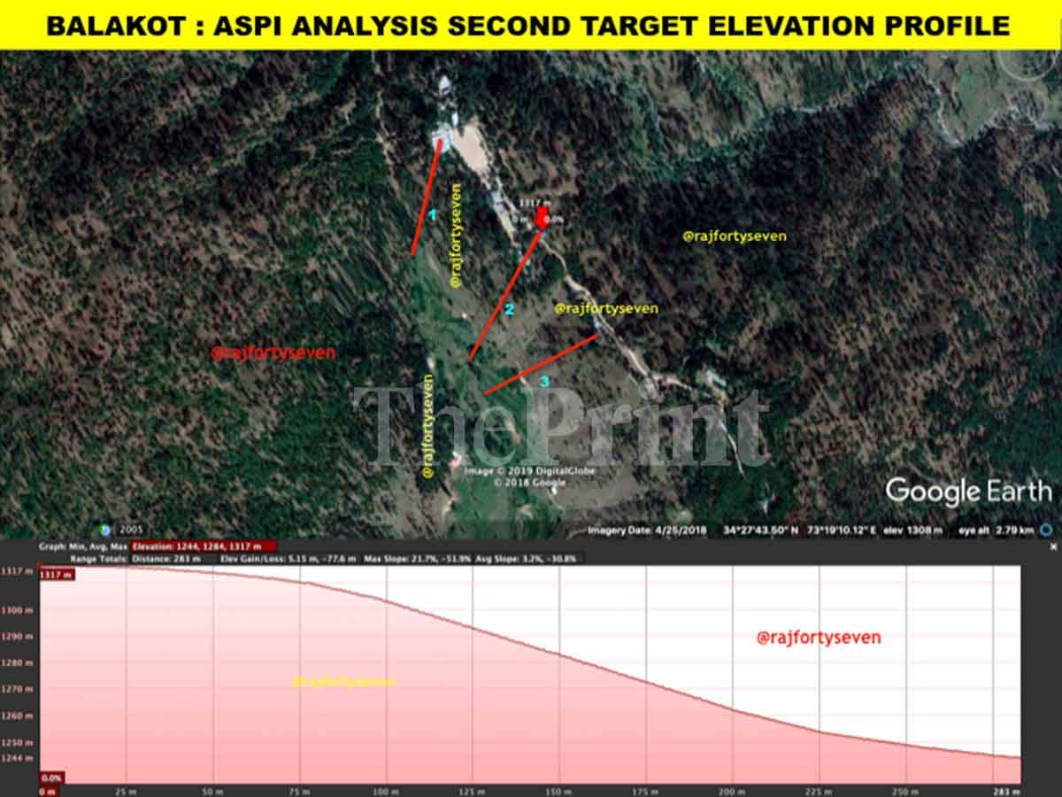 The direction of fire, the analysis claims, is from 197º to 240º, which when extended to 60 km, indicates that the location of the aircraft would be much within Pakistan’s territory, without any valley to move along in a nap-of-the-earth (NOE) manner — a kind of flying where geographical features are used as cover.