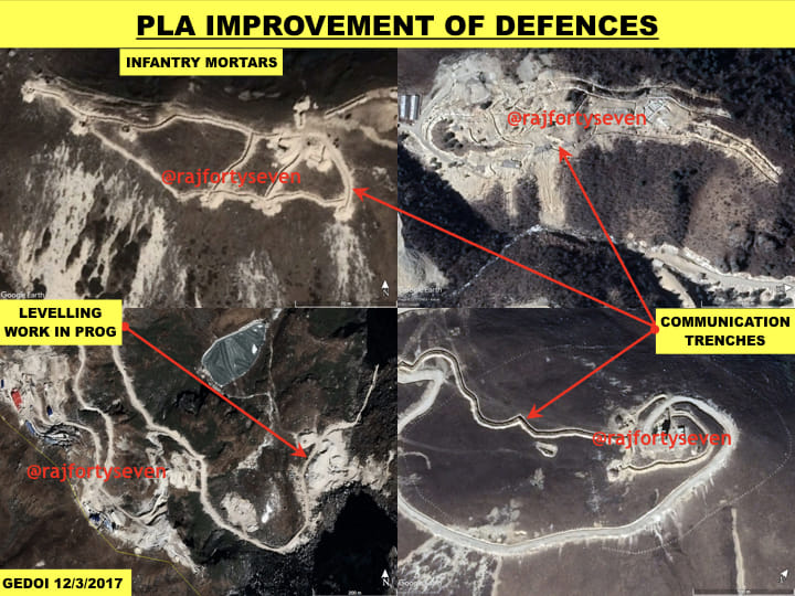 Roads and tracks are being widened and developed all around. Large cranes, earth moving equipment and construction material can be seen almost everywhere. Certain areas defiladed from Indian defences are being leveled, probably for future constructions.