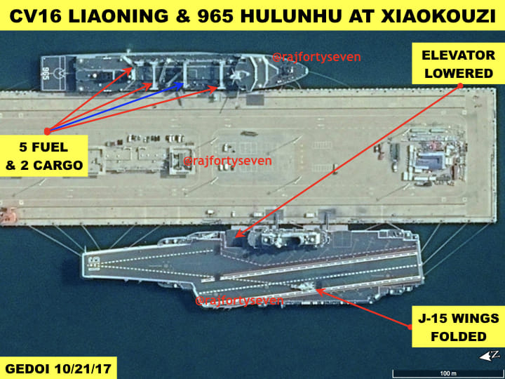 The latest sighting of Hulunhu and the Liaoning at Xiaokouzi on 21 October 2017, along with large amounts of loads, clearly indicates that Chinese navy is all set for its first CVBG to be operational. The maiden voyage of the first CVBG should commence soon, if not already started.