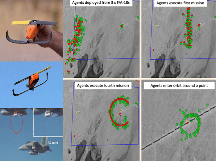 The United States is the world leader in swarm technology and has underway a host of swarming UAV and munition initiatives. It demonstrated the Perdix swarm in 2017. A trio of F/A-18 Super Hornet fighters release a total of 103 Perdix drones in air.