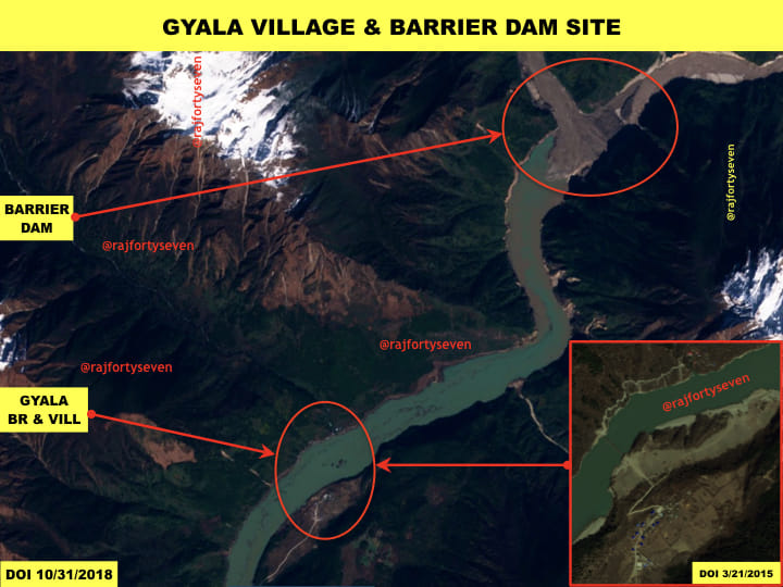 During the crisis stoked by the September landslide, the water levels did not reach the village and remained much below, though the Daling bridge, located about 22 km upstream from the Gyala barrier dam, sustained damage.