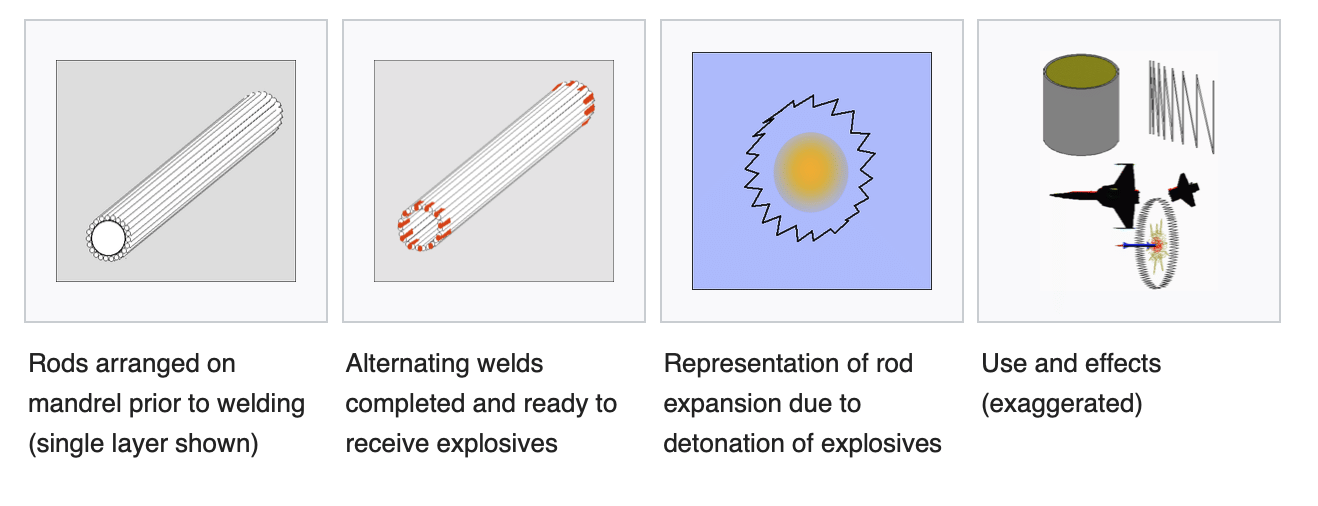 Let’s try to understand how the R-73 warhead would have exploded — The R-73 has a continuous rod warhead weighing 7.4 kg — which is activated by a proximity fuse when it senses an aircraft in close quarters. When detonated, the high explosive imparts momentum to the rods, thrusting them outward in an expanding circle. The pressure wave from the explosive acts evenly on the rods over their length. The rods are sufficiently soft to allow the expansion without breaking the rods or the welded joints, and the detonation velocity is limited to close to 1000 m/s, allowing the rods to bend at these locations instead. At some intermediate point the ring will have a zig-zag (alternating direction) appearance within a cylindrical envelope — Upon ultimate expansion the ring is circular and contained within a plane.