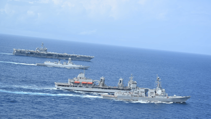 New Delhi: Intending to build interoperability between the two countries, the Indian Navy conducted an exercise alongside the US’s Theodore Roosevelt Carrier Strike Group (TRCSG) in the Indian Ocean on 12 July.