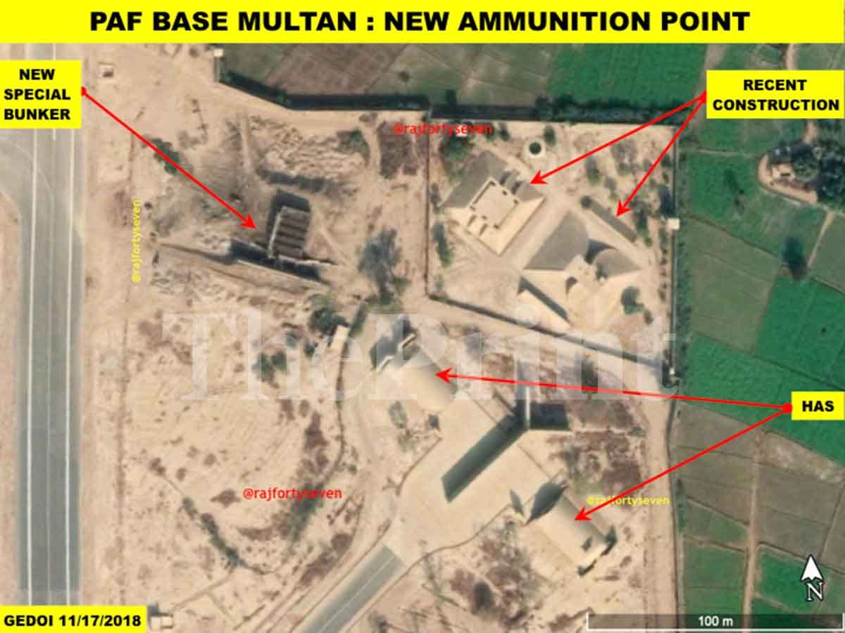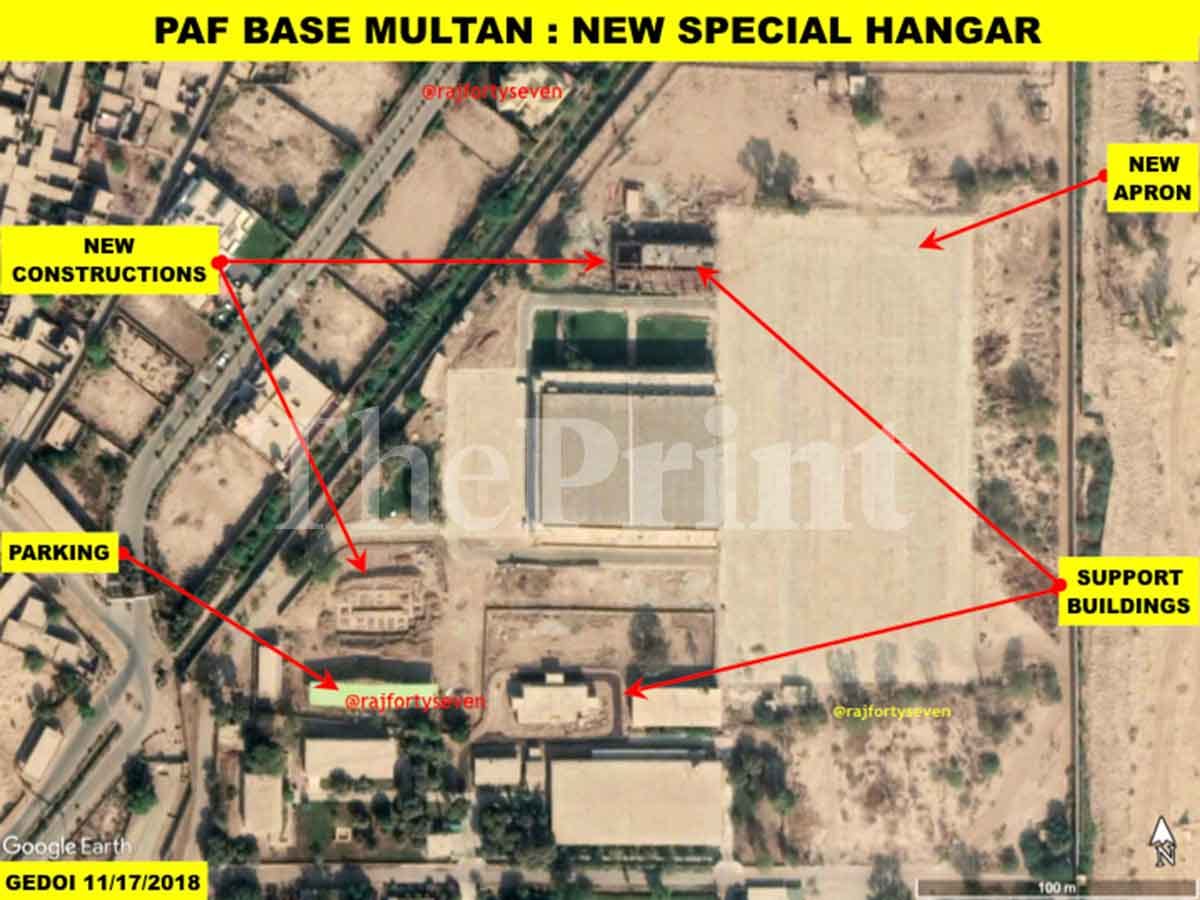 A special large hangar of 65m x 45m size, with two bays of more than 20m width, was recently constructed at the Multan airbase. The hangar also has special support buildings for manpower equipment and an ammunition bunker across the runway.