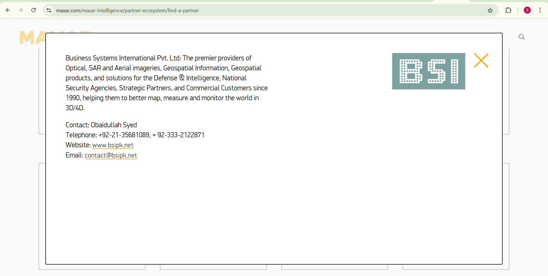 Significantly, hours after this email response, Maxar quietly removed BSI from its website. The Pakistani firm no longer appears as a listed partner.
