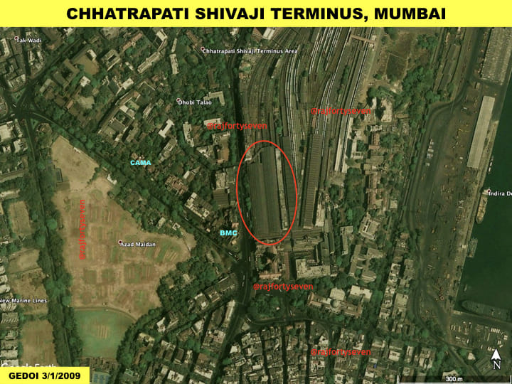 The main sheds of this facility resemble Mumbai’s Chhatrapati Shivaji Terminus (CST), one of the sites targeted by the terrorists. The other two concrete buildings can be easily identified as surrogates for Cama Hospital and the BMC building adjacent to the CST. These could have been used to provide training for room-to-room killing and fighting.