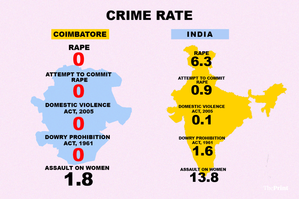 New Delhi: If statistics are to be believed, Coimbatore in Tamil Nadu was India’s safest city for women in 2016. Official data says that in 2016 not a single case of rape, domestic violence, acid attack, stalking, or demand for dowry was recorded in the entire city.