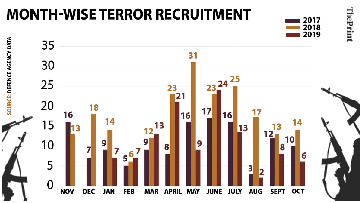 “The local recruitment has actually come down. After the Burhan Wani encounter in 2016, there was a gradual increase in local terror recruitment, but this is coming down,” a senior security officer told ThePrint.
