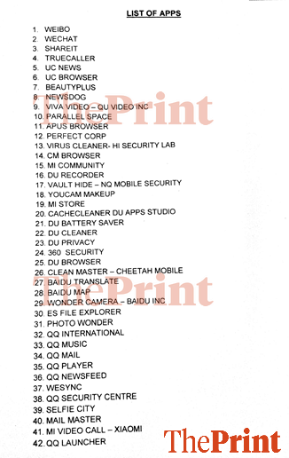 A list of 42 applications, including popular ones such as Truecaller and WeChat, have been banned with immediate effect and all officers and men have been told to strictly comply with instructions to clean up both their official and personal mobile phones.