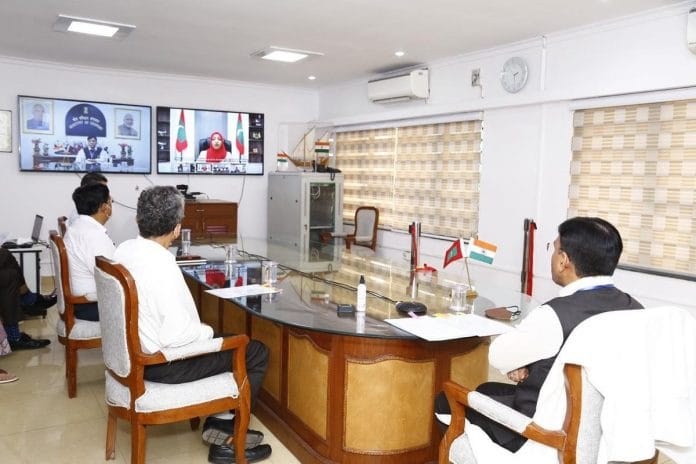 New Delhi: Minister of State (Independent Charge) for Shipping Mansukh Mandaviya and Minister of Transport and Civil Aviation of Maldives, Aishath Nahul jointly e-launched a direct cargo ferry service between India and the Maldives, said the Ministry of External Affairs on Monday.