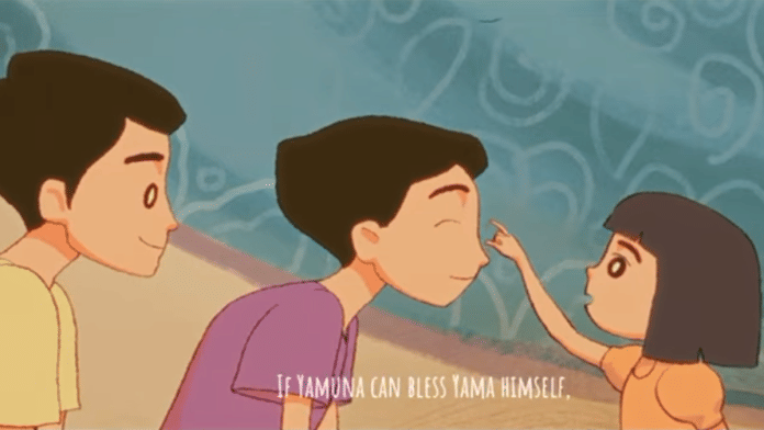 The animation shows visuals of ‘Bhai Phonta’ (the Bengali version of Bhai Dooj), a Hindu festival to celebrate brothers; Kali Puja, and diyas, which symbolise the Hindu festival of lights, Diwali.