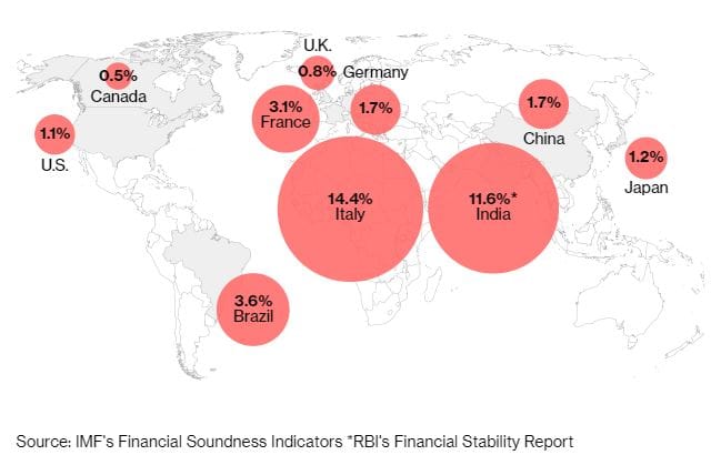 Italy, India have the worst bad loan ratios among the top 10 economies