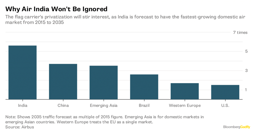 As Anurag Kotoky of Bloomberg News has noted, the only potential bidder to have publicly expressed a desire to buy Air India is InterGlobe Aviation Ltd.’s IndiGo, a homegrown low-cost airline that’s obviously drawn to the flag carrier’s bilateral flying rights and slots at busy airports like Heathrow and John F. Kennedy.