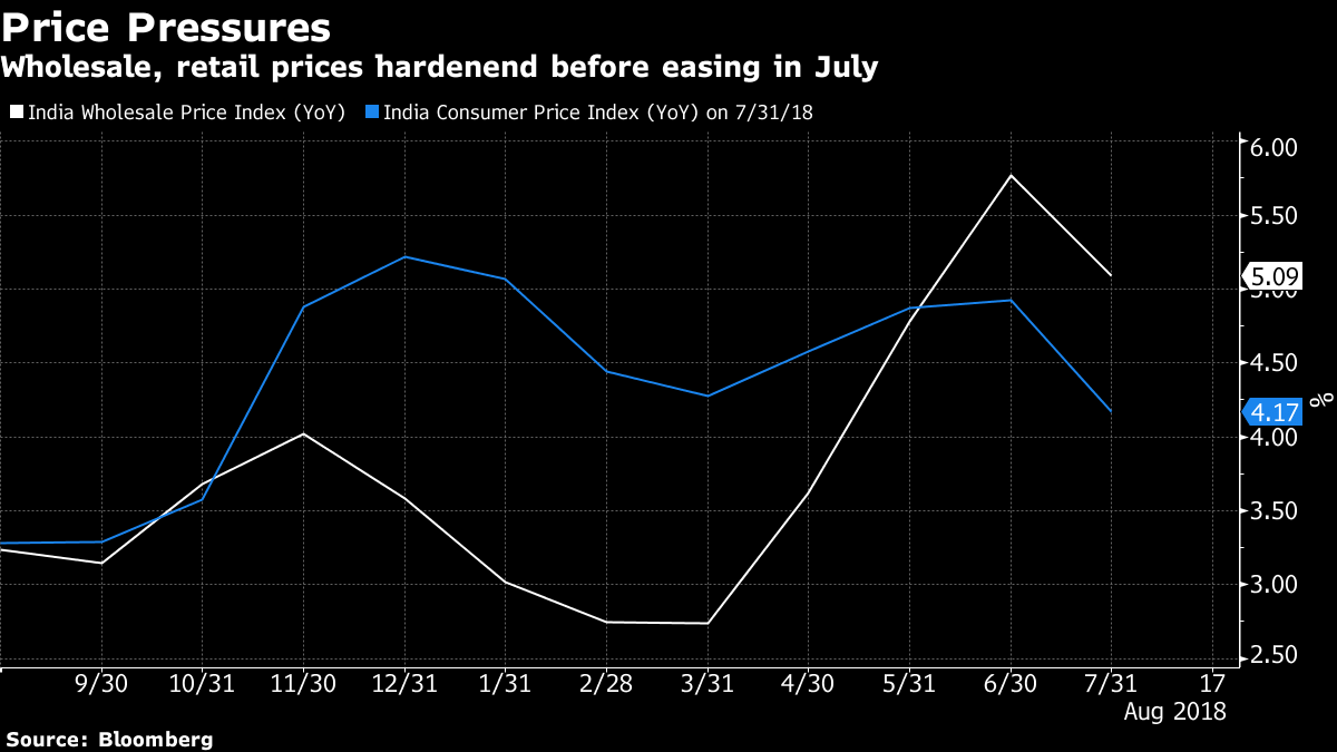 More than 1,200 manufacturing firms — both small and large — polled by the Reserve Bank of India reported input price pressures and an increase in selling prices. The central bank raised interest rate twice since June to the highest in two years to curb price pressures and support the rupee amid a sell-off in emerging market currencies.