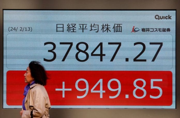 TOKYO (Reuters) – Asian stock markets rallied on Thursday, buoyed by Wall Street’s surge to all-time peaks overnight after a milder U.S. inflation report raised expectations the Federal Reserve will deliver at least two rate cuts this year.