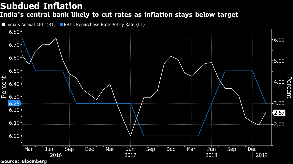 Tight liquidity conditions and a crisis in the shadow banking sector have hit consumption, dragging down overall growth. The central bank could tweak its growth forecast for the fiscal year to March 2020, having pegged it at 7.4 percent in February. The global outlook is also worsening, and with the U.S. Federal Reserve halting its rate tightening cycle, emerging-market central banks are getting some breathing space.