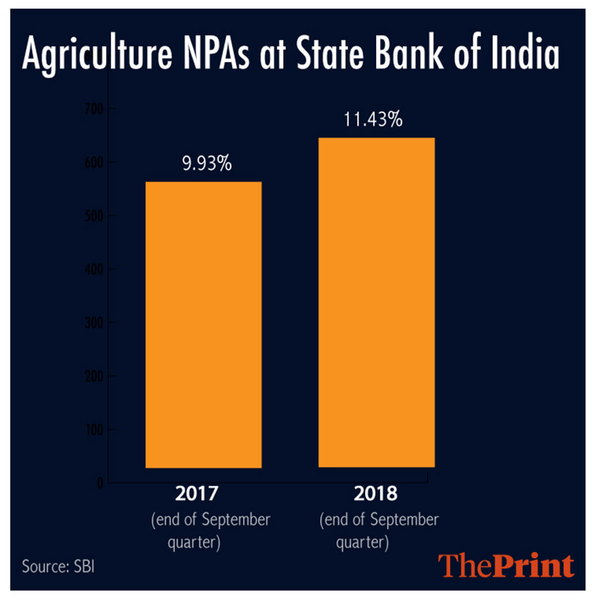 More recent data also shows that agriculture loans are turning into NPAs for banks. The NPAs in this sector at the country’s largest lender, the State Bank of India, were at 11.43 per cent at the end of the September quarter, as against 9.93 per cent in the same period a year ago.