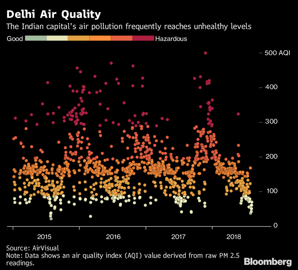 India has long struggled to pull together the type of coordinated national approach that’s helped China reduce pollution. Prime Minister Narendra Modi’s government is now pushing new initiatives it says are starting to curtail hazardous air. But any gains would have to be enough to override other facets of India’s rampant growth, from the dust left by thousands of new construction sites to exhaust from millions of new cars.