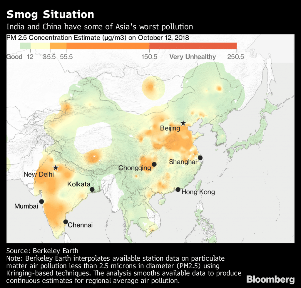 The country’s environment ministry says it’s also making headway in reducing bad air, citing its own calculations for this September when it says levels of PM2.5 came down in Delhi. The ministry has introduced an early warning system to help it take preemptive action before pollution spikes and it’s planned other measures like deploying more road sweeping machines.