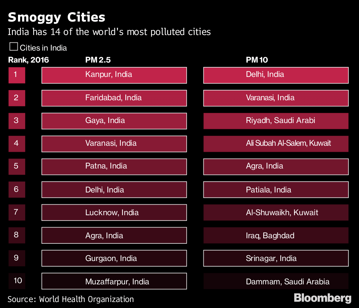 New Delhi: Asia’s largest economy, China, has long had a reputation for smoggy skies. But these days, neighboring India is fighting the far bigger battle with pollution: The South Asian country is home to the world’s 10 most polluted cities.