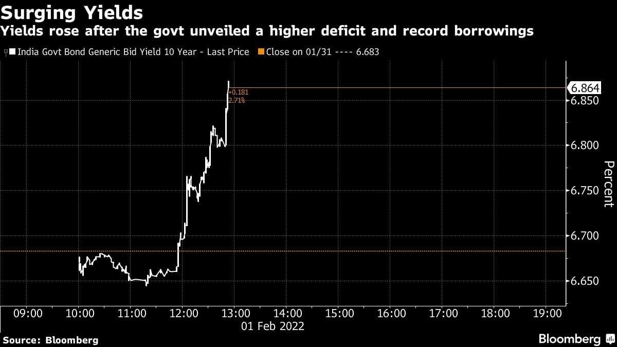 The yield on the benchmark 10-year bond rose as much as 21 basis points to 6.89%, the highest since July 2019. The rupee fell 0.2% to 74.74 per dollar.